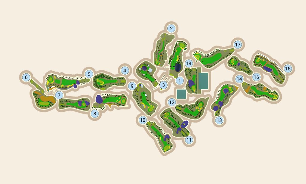Con un recorrido de 18 hoyos, par 72, sobre una superficie de 50 hectáreas, este campo fue diseñado en 2003 por el célebre jugador de la Ryder Cup, José María Cañizares. Su diseño estratégico y retador lo ha convertido en uno de los campos más reconocidos por los golfistas que buscan superarse. Con un slope 145, es considerado un trazado exigente, pensado para poner a prueba no solo la técnica, sino también la concentración y la estrategia de cada jugador.